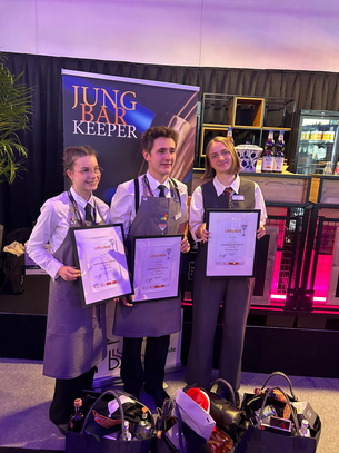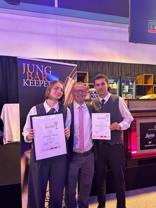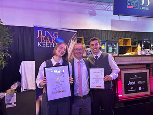 Im Rahmen der Messe Alles für den Gast tratenheuer Victoria Benda und Julian Adelsberger für die LBS Obertrum beim renommierten Wettbewerb „Österreichs Jungbarkeeper:in des Jahres 2025“ an.